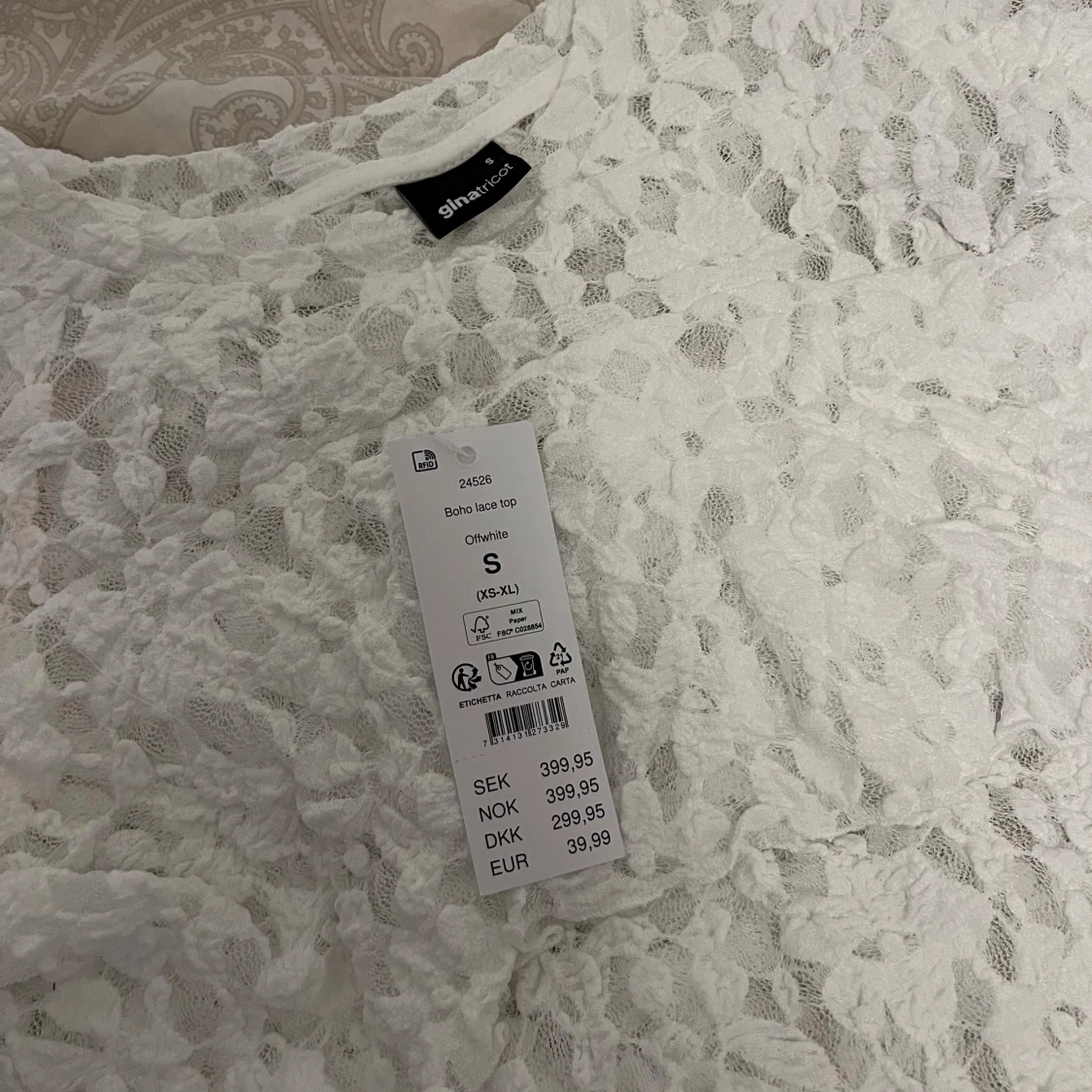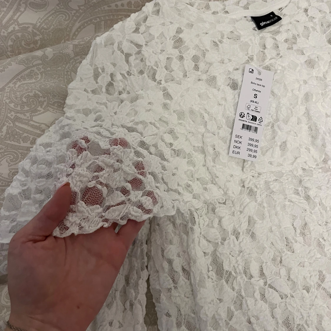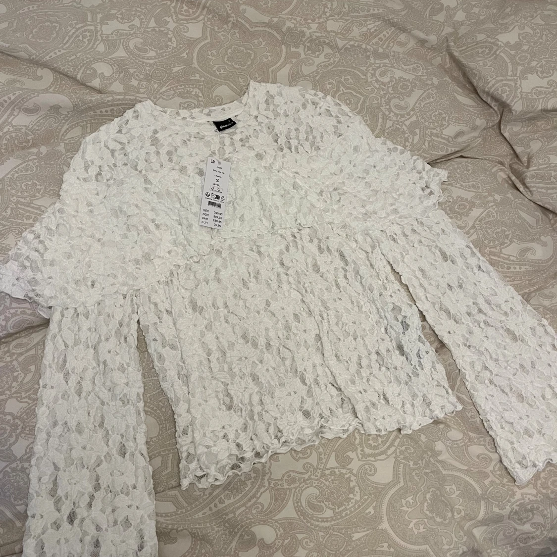 Superfin vit spetsblus från Gina Tricot. Blusen har långa, vida ärmar. Ny