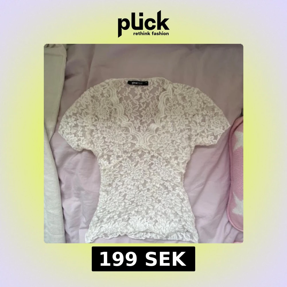 Supersöt vit blus från Gina Tricot i storlek XS. Helt i spets med blommigt mönster och korta ärmar.