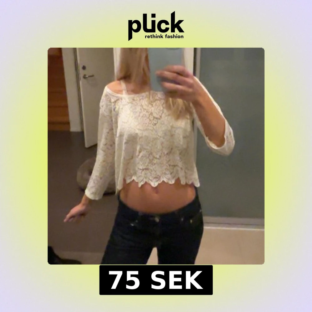 Säljer en vit croppad blus från Monki i storlek Small. Blusen är i spets med blommigt mönster och har trekvartsärm. Perfekt för dig som gillar romantisk och feminin stil. Superfin att styla med höga jeans!