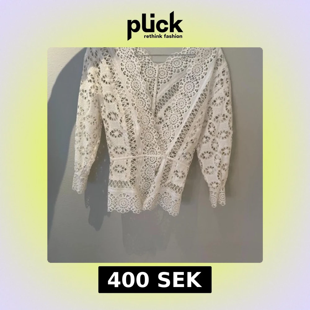 Superfin vit blus från Sandro Paris med v-ringad omlottfront och detaljerad spets. Blusen har trekvartsärm och vackra broderade mönster över hela plagget. Perfekt för dig som gillar romantisk och feminin stil med extra detaljer.