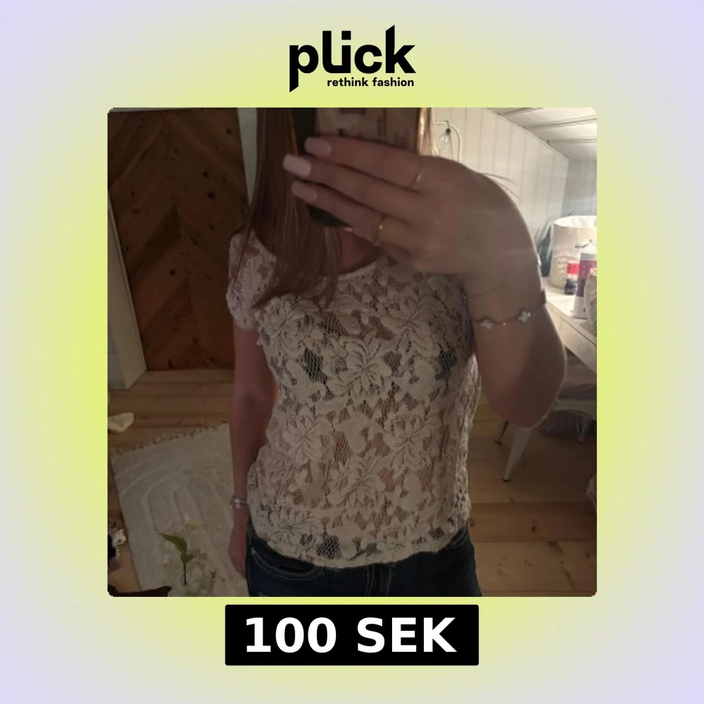 Säljer en superfin vit blus i spets med stora blommor som mönster.