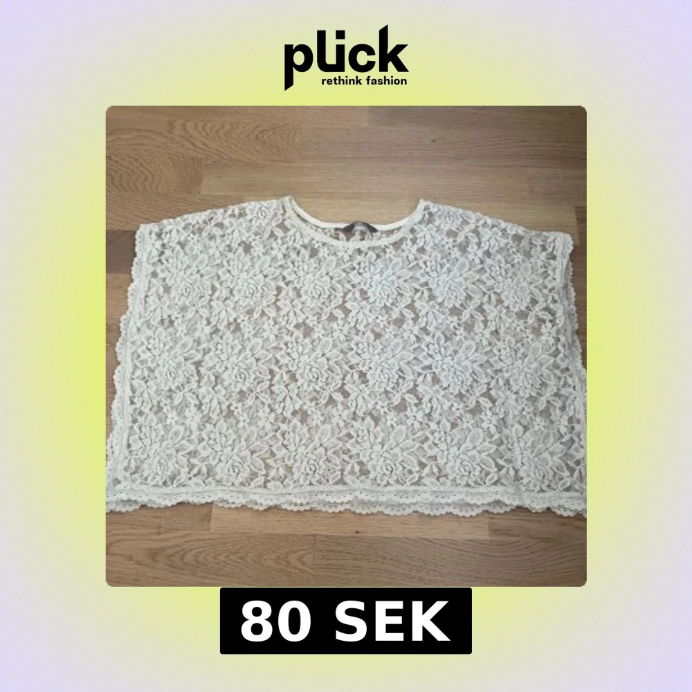 Säljer en vit blus i spets med blommigt mönster och rund hals. Blusen är croppad och har korta, vida ärmar. Spetsen är detaljerad och ger en romantisk vibe. Perfekt att ha över ett linne eller bandeau. Supersnygg till svarta jeans eller kjol!