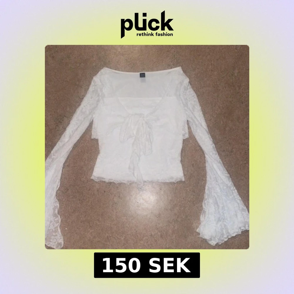 Supersöt vit blus från SHEIN i spets med långa utsvängda ärmar och stor knytrosett framtill. Blusen har v-ringning och transparenta detaljer som ger en romantisk vibe. Aldrig använd säljer eftersom jag hitta en annan tröja