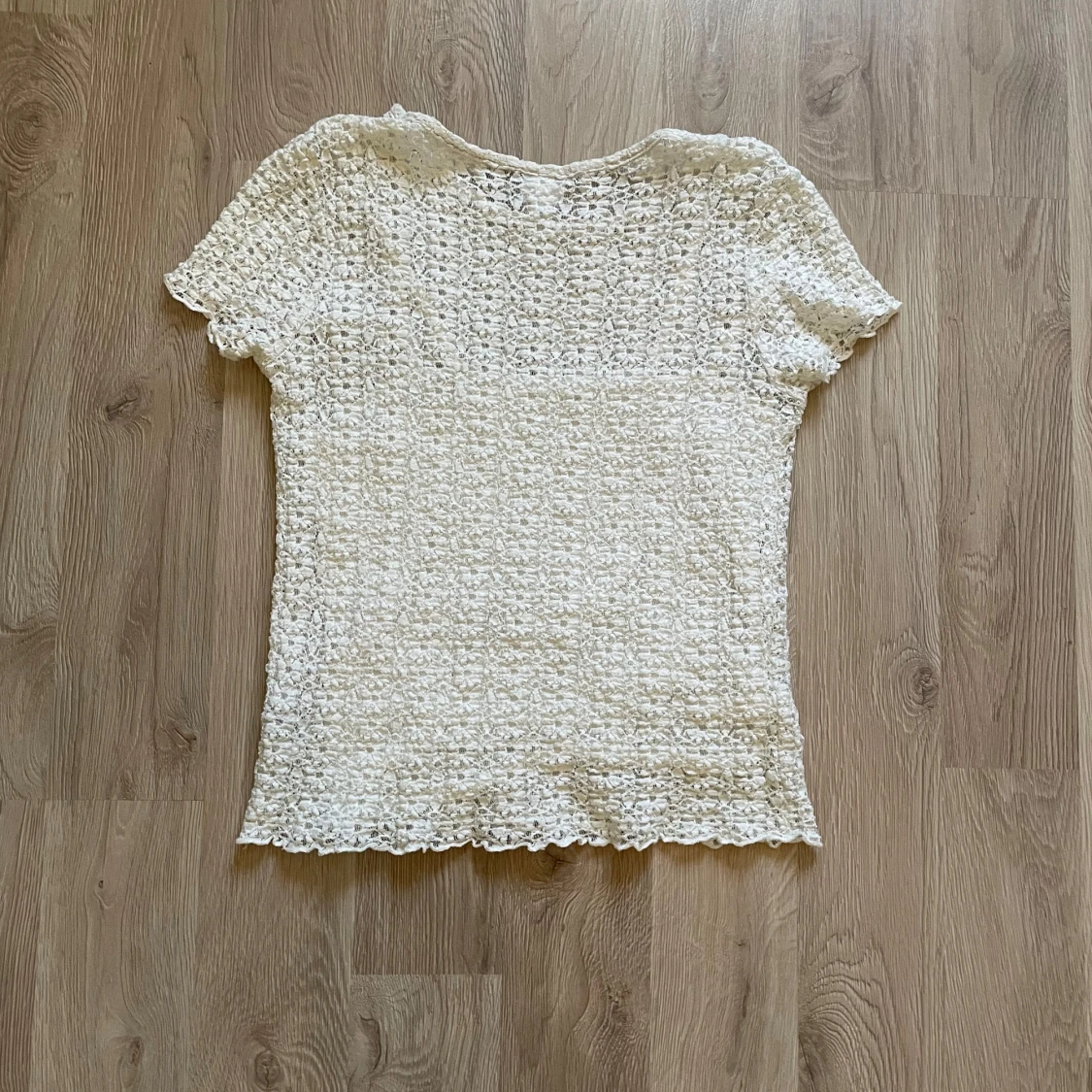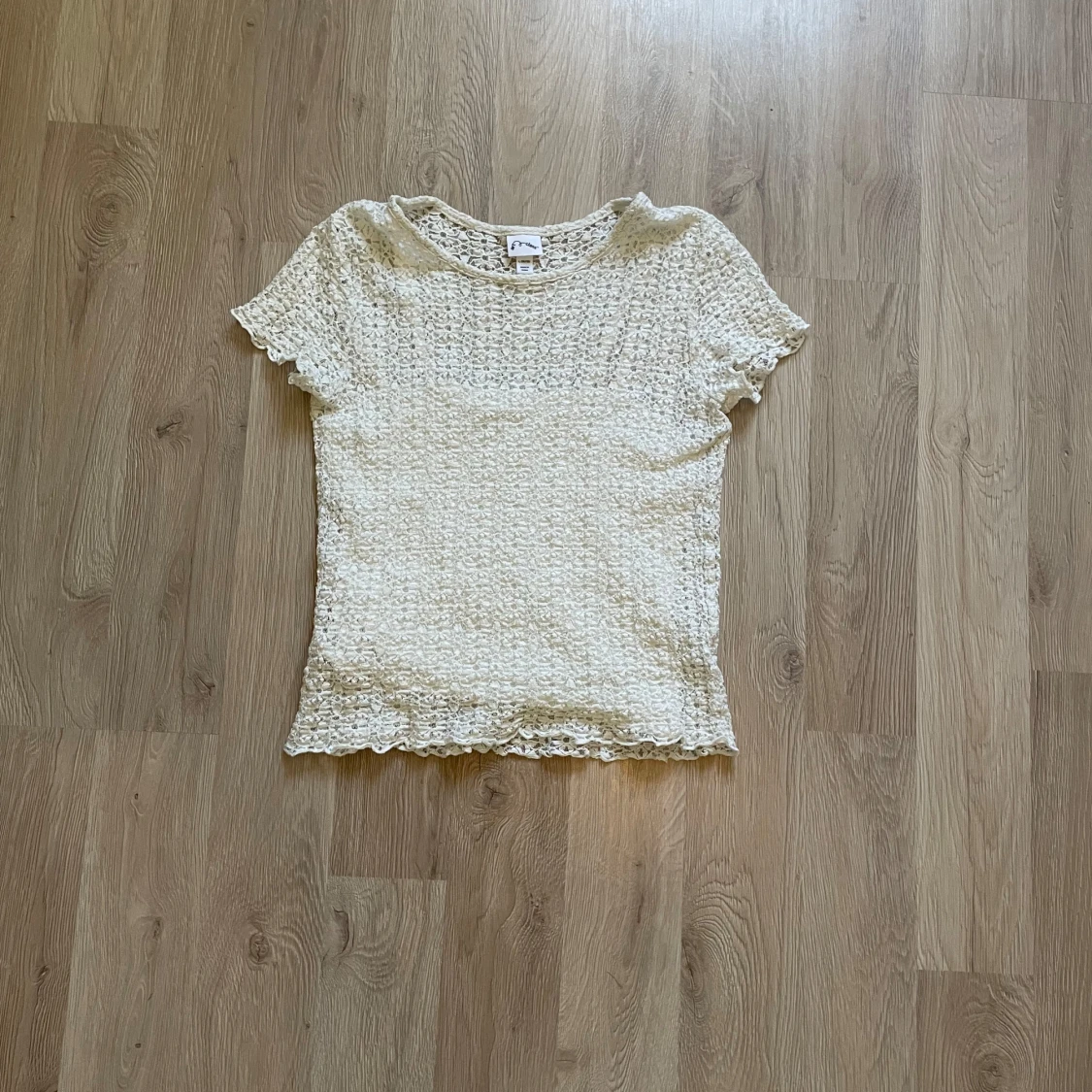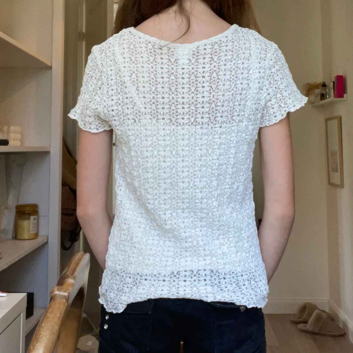 Superfin vit blus från Zara med korta ärmar och genombruten spets. Blusen har rund halsringning och vågig kant nertill och vid ärmslut. Perfekt för dig som gillar romantisk och söt stil. Lätt och luftig, passar perfekt till sommaren! Pris går att diskuteras