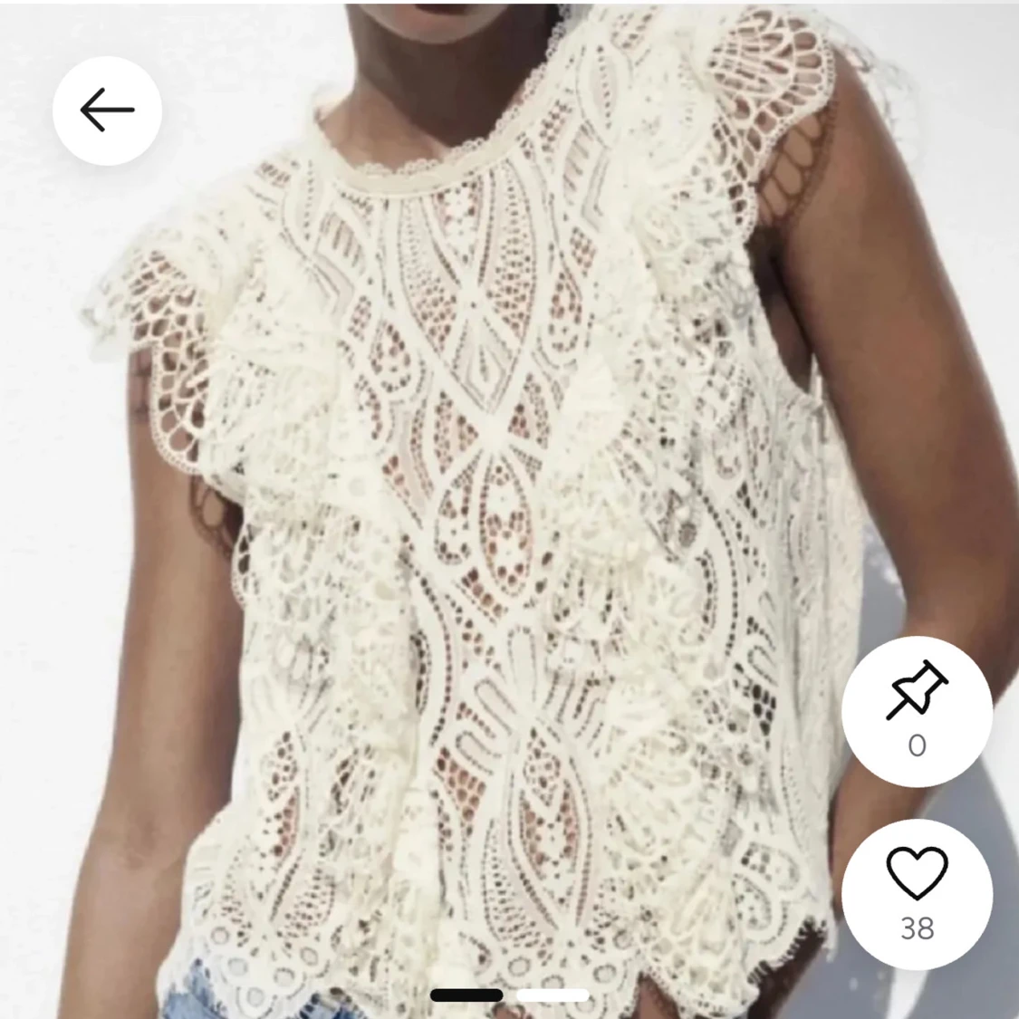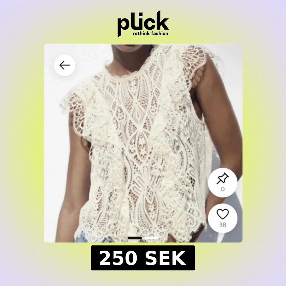 Superfin vit blus i spets med snygga volangdetaljer på axlarna och längs framsidan. Ärmlös modell med spets och rund halsringning. Inga defekter på den då jag inte använt den så mycket, skriv för fler bilder