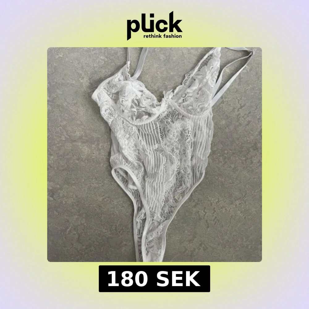 Elegant vit spetsbody med justerbara axelband och vacker blommig spetsdetalj. Den har en djup urringning och en liten rosett framtill. Perfekt för en speciell kväll.