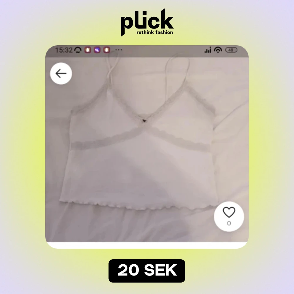 Säljer en söt vit linnetopp med smala axelband och spetsdetaljer längs halsringningen. Toppen är croppad och har en lätt vågig kant nertill. Perfekt för sommardagar eller som ett lager under en kofta.