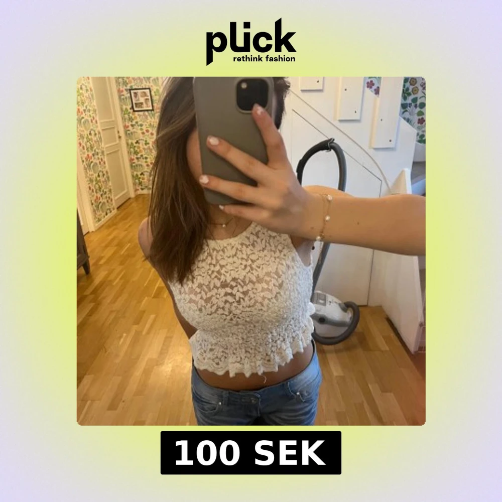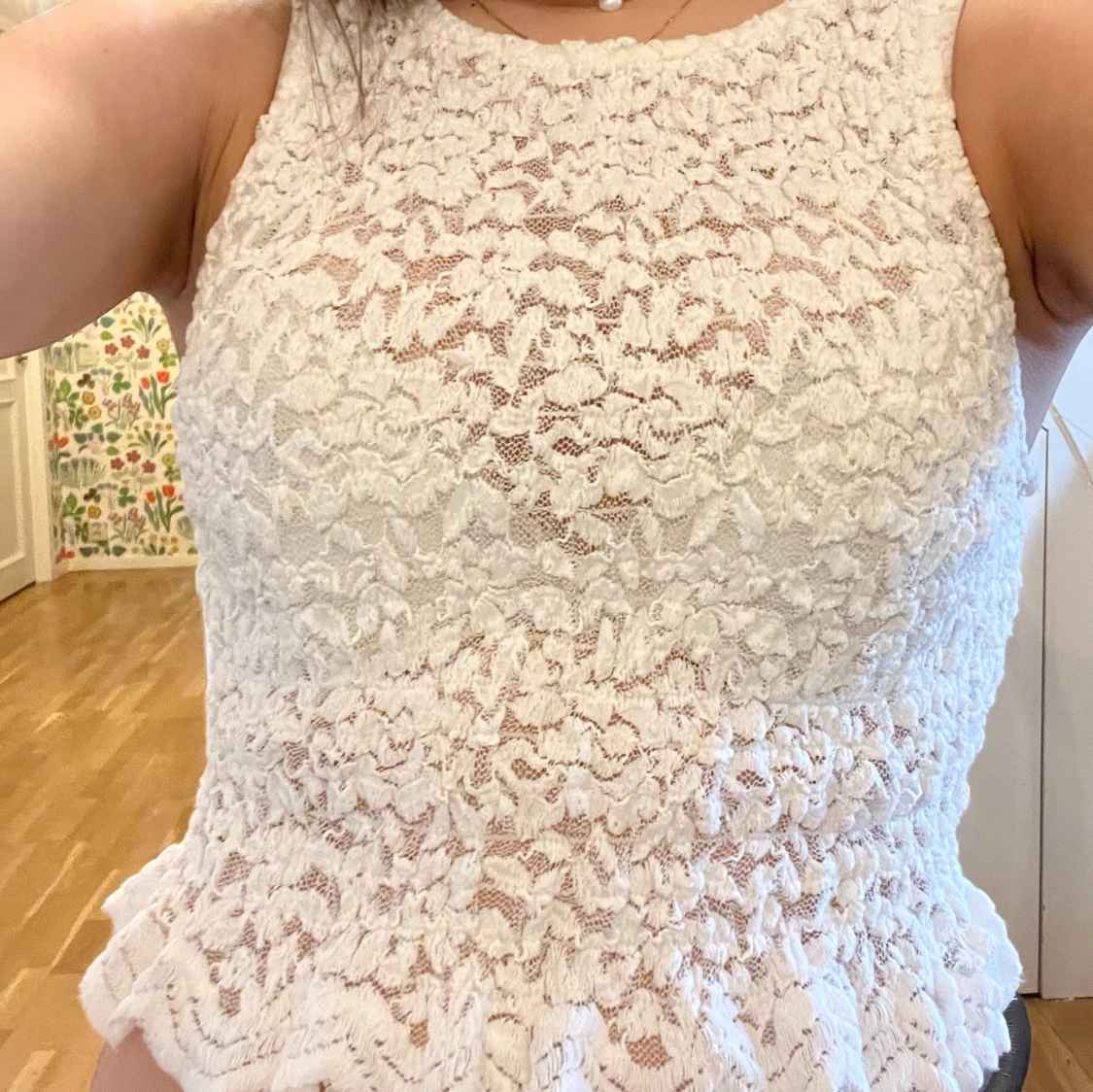 söt vit spetslinne med volangdetaljer. Toppen är ärmlös och croppad, perfekt för sommardagar. Den har en vacker spetsdesign och säljer då jag inte använder den längre❣️