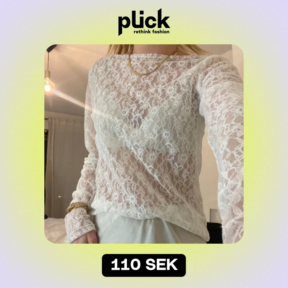 Vit spetströja från H&M, i storlek L 😊 Jag har i vanliga fall XS/S, men tycker den sitter löst och snyggt. Nypris ca 179kr