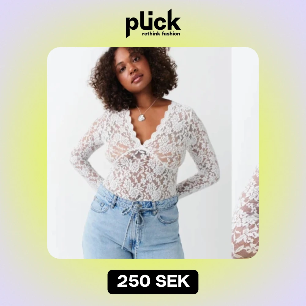 Vit topp i spets & v-ringning frĂ„n Gina tricot. Storlek xs, i nyskickđ„°