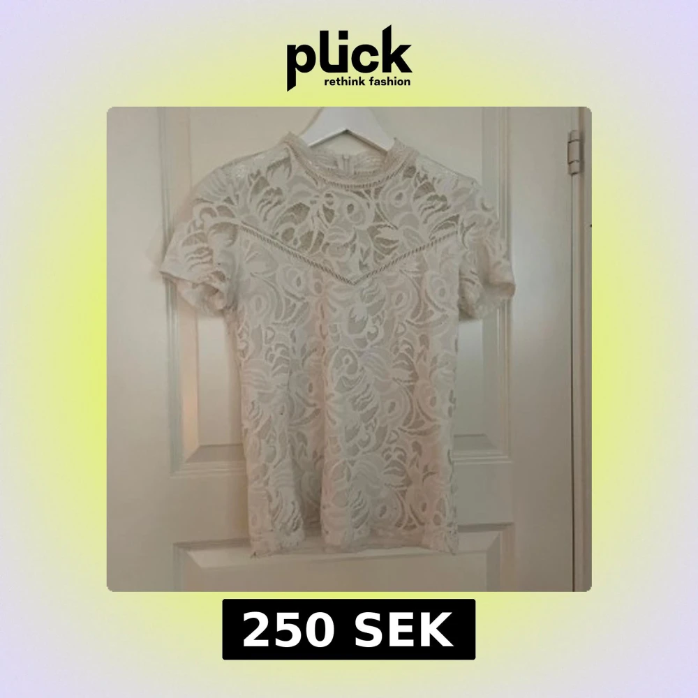 Elegant vit spetsblus med korta ärmar och ett vackert blommönster. Blusen har en rund hals och är perfekt för en stilren look. Den genombrutna spetsen ger en luftig och feminin känsla.