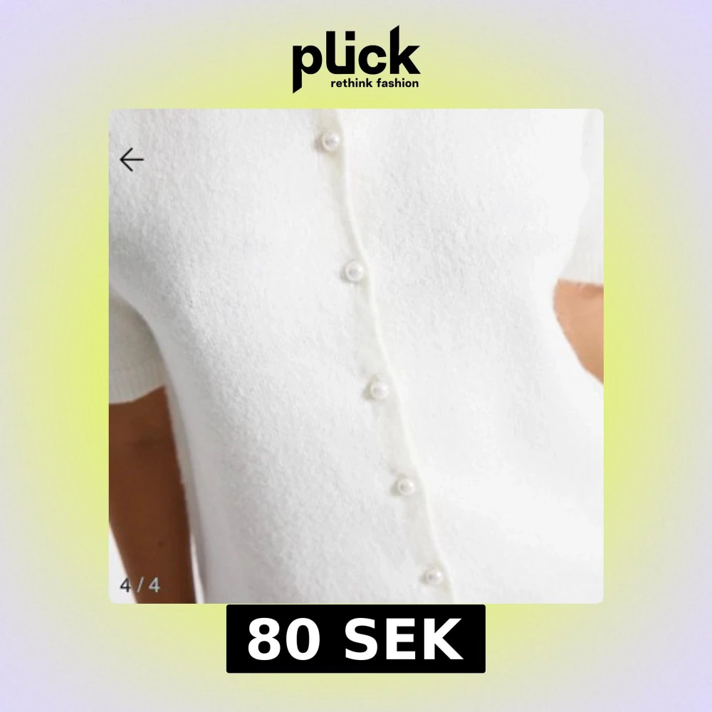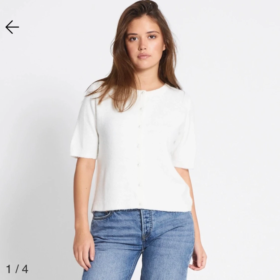 Superfin vit stickad blus med korta ärmar och rund halsringning. Framsidan har dekorativa pärlknappar som ger en söt och stilren look. Använd ca 2 gånger, därav nytt skick. Orginalpris 125kr🌸