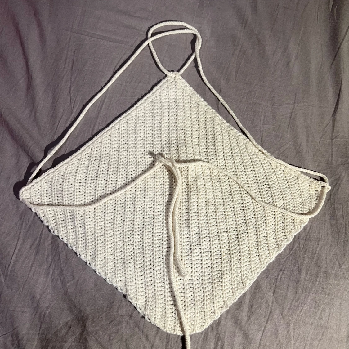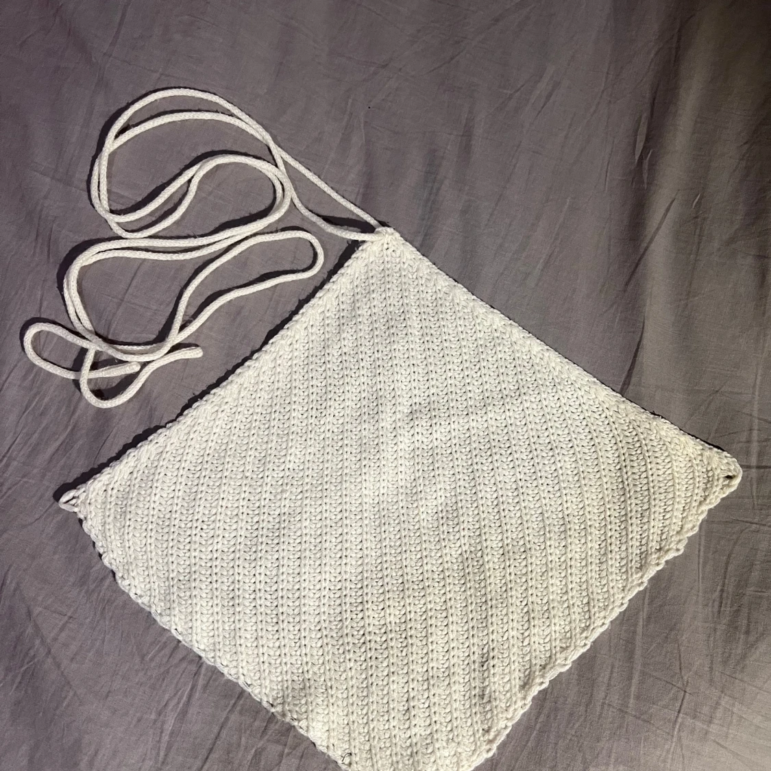 Säljer en vit stickad tubtopp med knytband. Den är öppen men med med knytband på ryggen och lite halterneck. Perfekt för sommardagar och kan stylas på olika sätt. Toppen har en enkel och stilren design. Passar XS/S