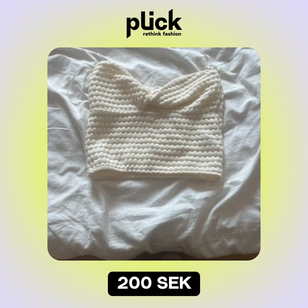 Säljer en superfin vit stickad tubtopp som är perfekt för sommaren. Den är ribbad och har en söt knutdetalj framtill. Toppen är ärmlös och passar perfekt till både fest och vardag. Den är i nyskick och redo att bäras av någon som älskar en stilren look!pris kan diskuteras !!!!