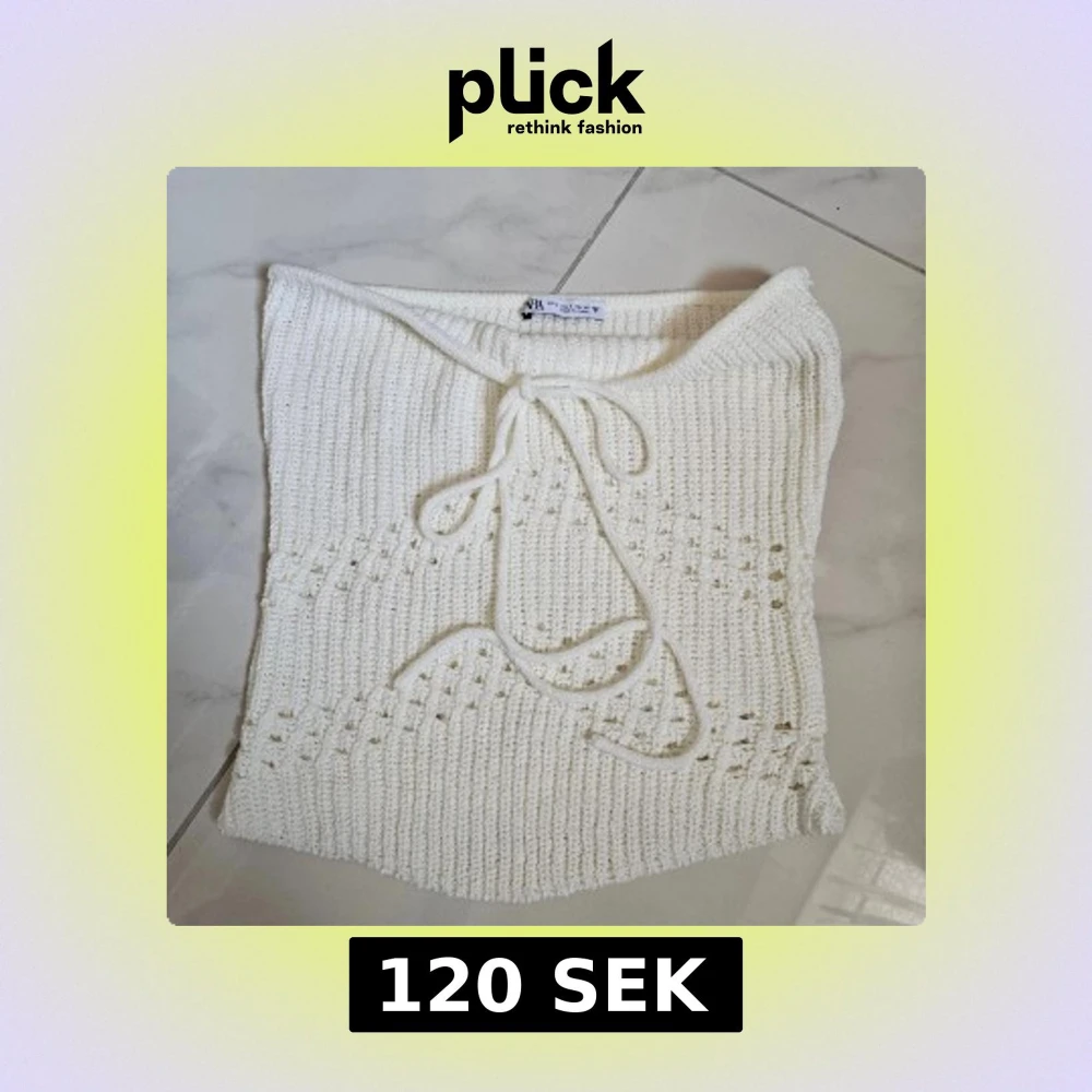 Säljer en vit stickad tubtopp från Zara i storlek S. Toppen har ett snyggt ribbat mönster och dekorativ snörning framtill. Perfekt för sommardagar och enkel att styla med jeans eller kjol.