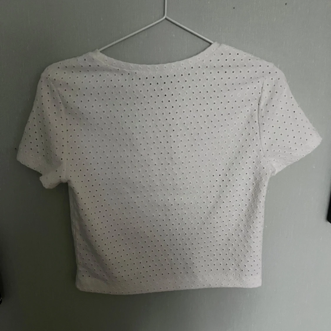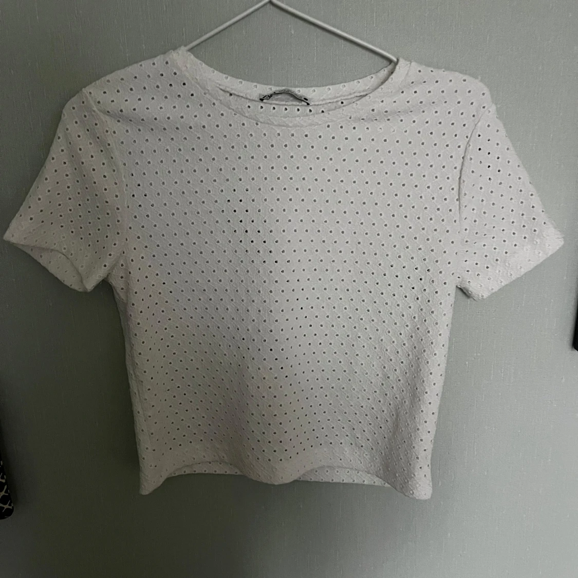 Säljer denna vita T-shirt från Zara med ett hål mönster!🤍 Är i storlek S men passar även bra på någon med xs!