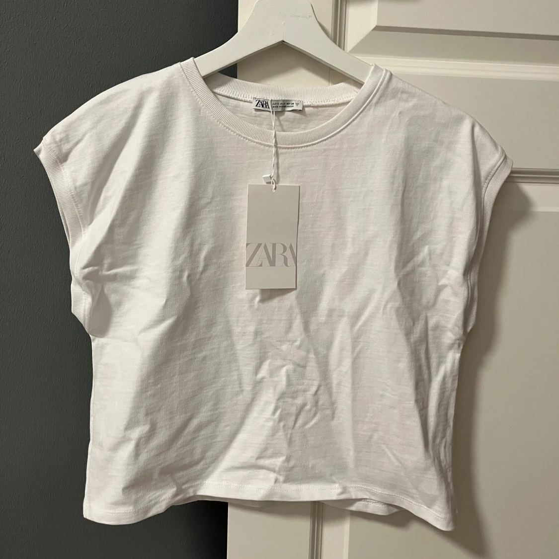 Säljer en enkel och stilren vit T-shirt från Zara. Den har en rund halsringning korta ärmar. T-shirten är i ett mjukt bomullsmaterial.