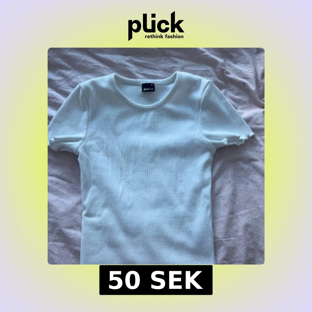 En stilren vit ribbad topp från Gina Tricot i storlek XS. T-shirten har rund halsringning och korta ärmar. Perfekt basplagg med en tight passform och mjukt material som känns skönt mot huden.
