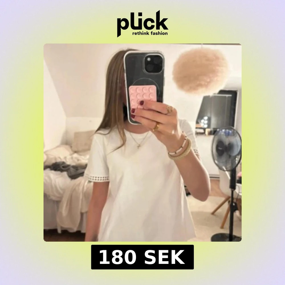 Vit t-shirt i bomull med korta ärmar och snygg spetsdetalj längst ut på ärmsluten. Enkel och fräsch modell med rund halsringning, lånade bilder!