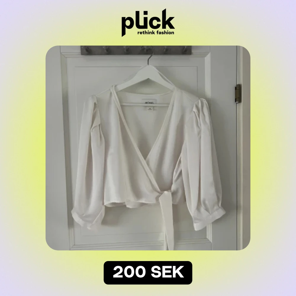 Vit lite kortare topp med knytning från Monki. Strl 38. Köparen står för frakten