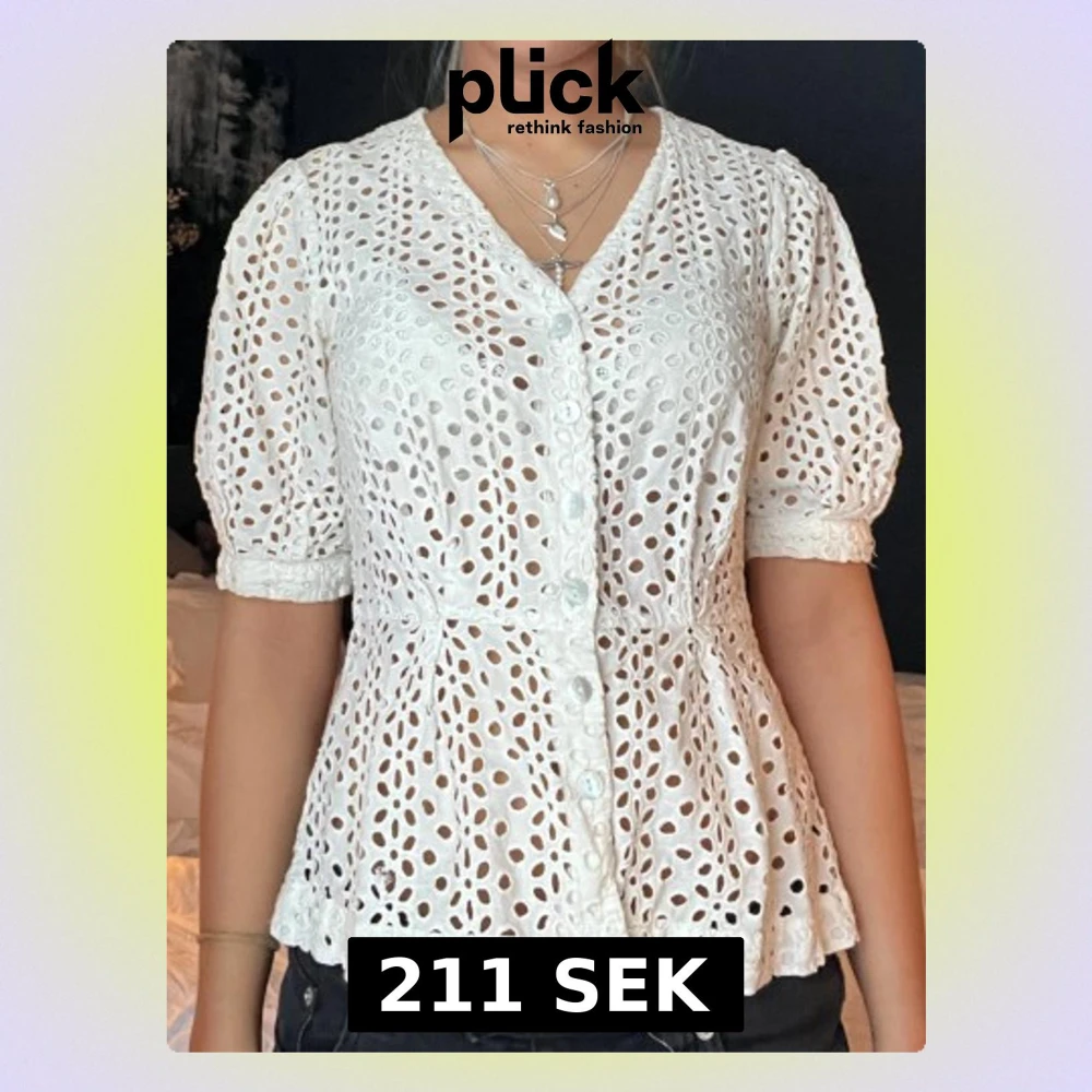 Säljer en topp med fina broderi hål i. Går att ha utan och med linne under. 🤍