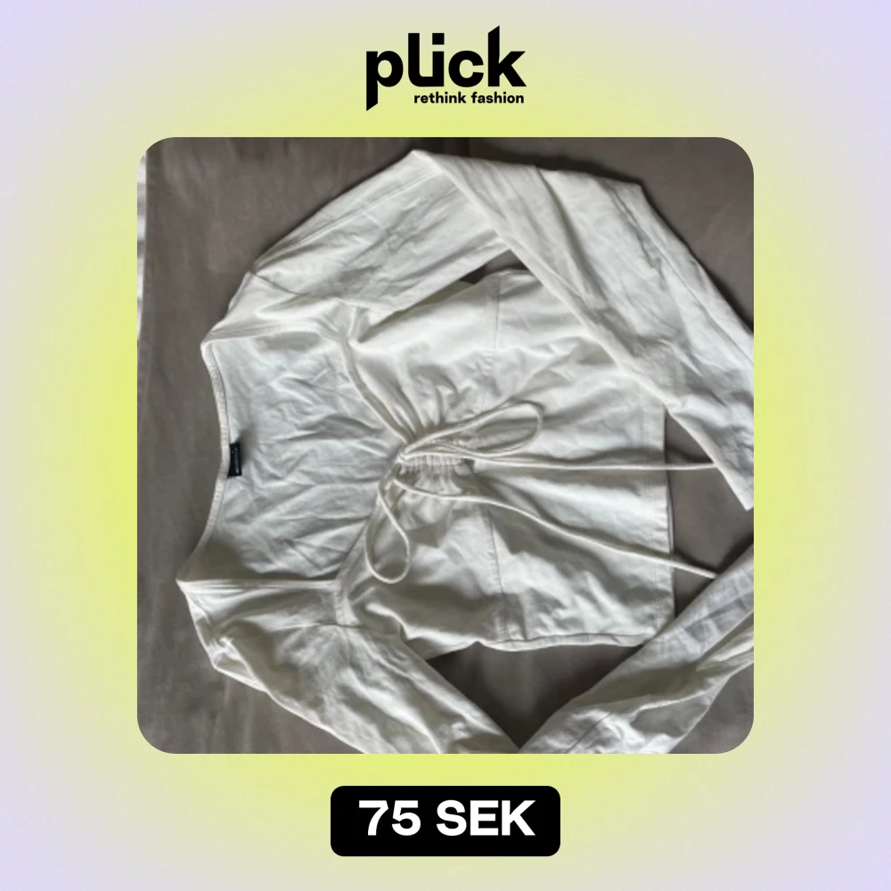 Vitt långärmad topp från Gina tricot, knyte vid bröstet, använd men inga defekter.
