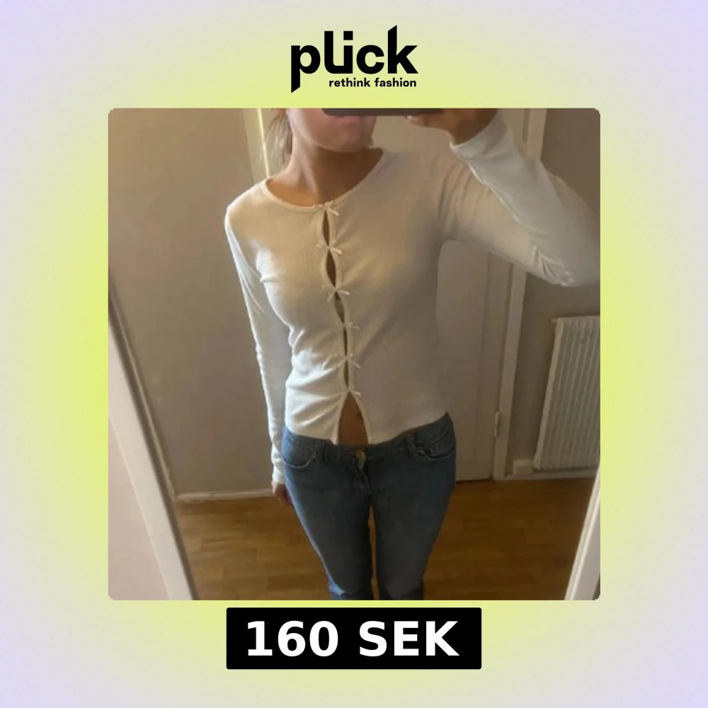Supersöt vit långärmad topp från Nelly med ribbad struktur och dekorativa rosetter längs hela framsidan. Slutsåld! Använd fåtal gånger🤗