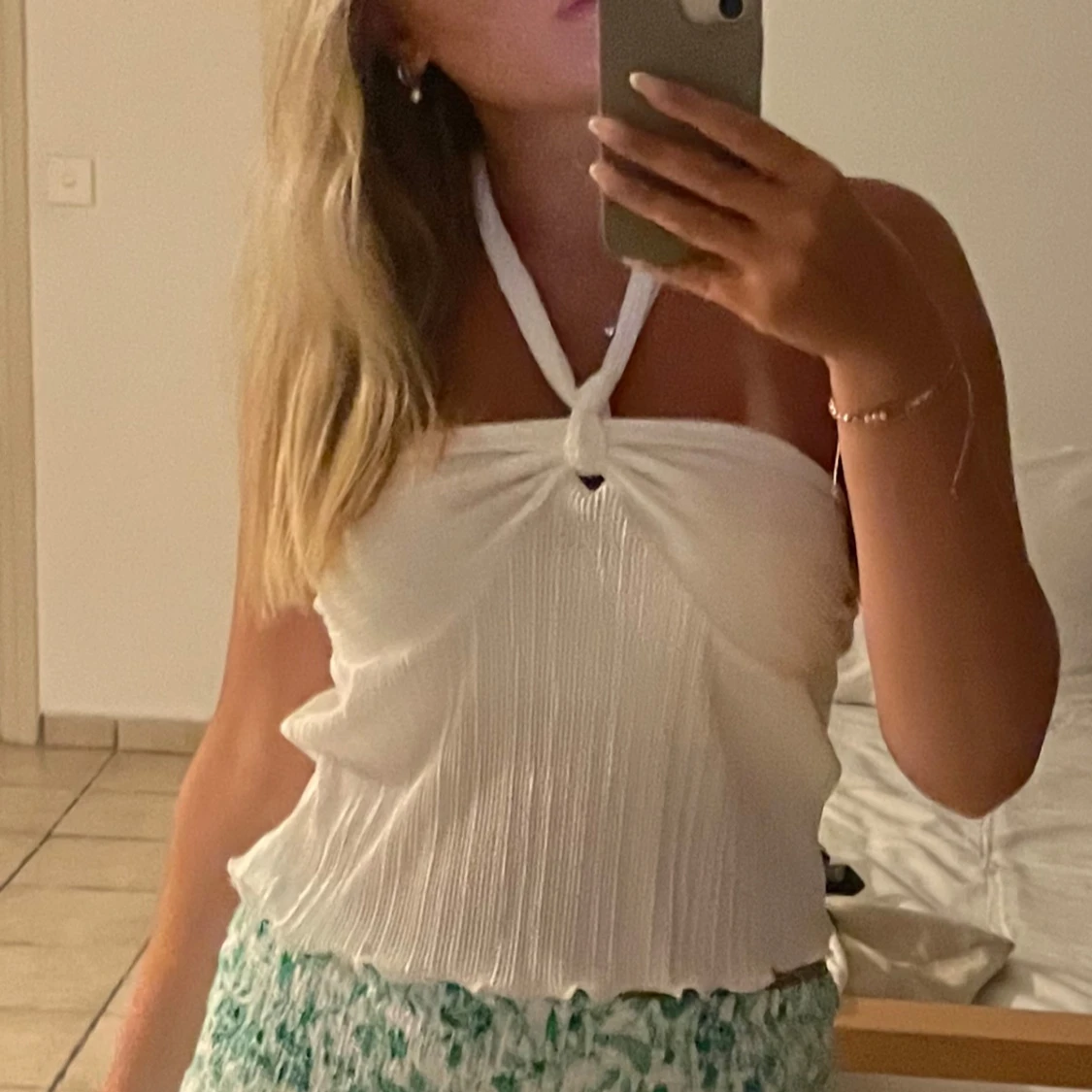 Så fin vit topp som knappt är använd, passar xs-m!!💗💗