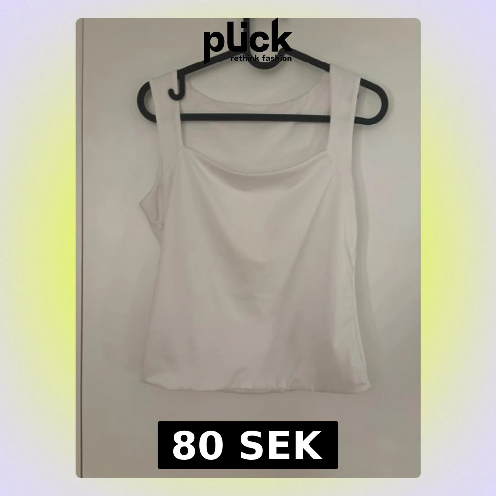 Snygg vit linnetopp i satin med breda axelband och rak halsringning. Perfekt för att skapa en stilren och frĂ€sch look. Materialet ger en lyxig kĂ€nsla och passar bra till mĂ„nga olika outfits. JĂ€ttefin!đ€