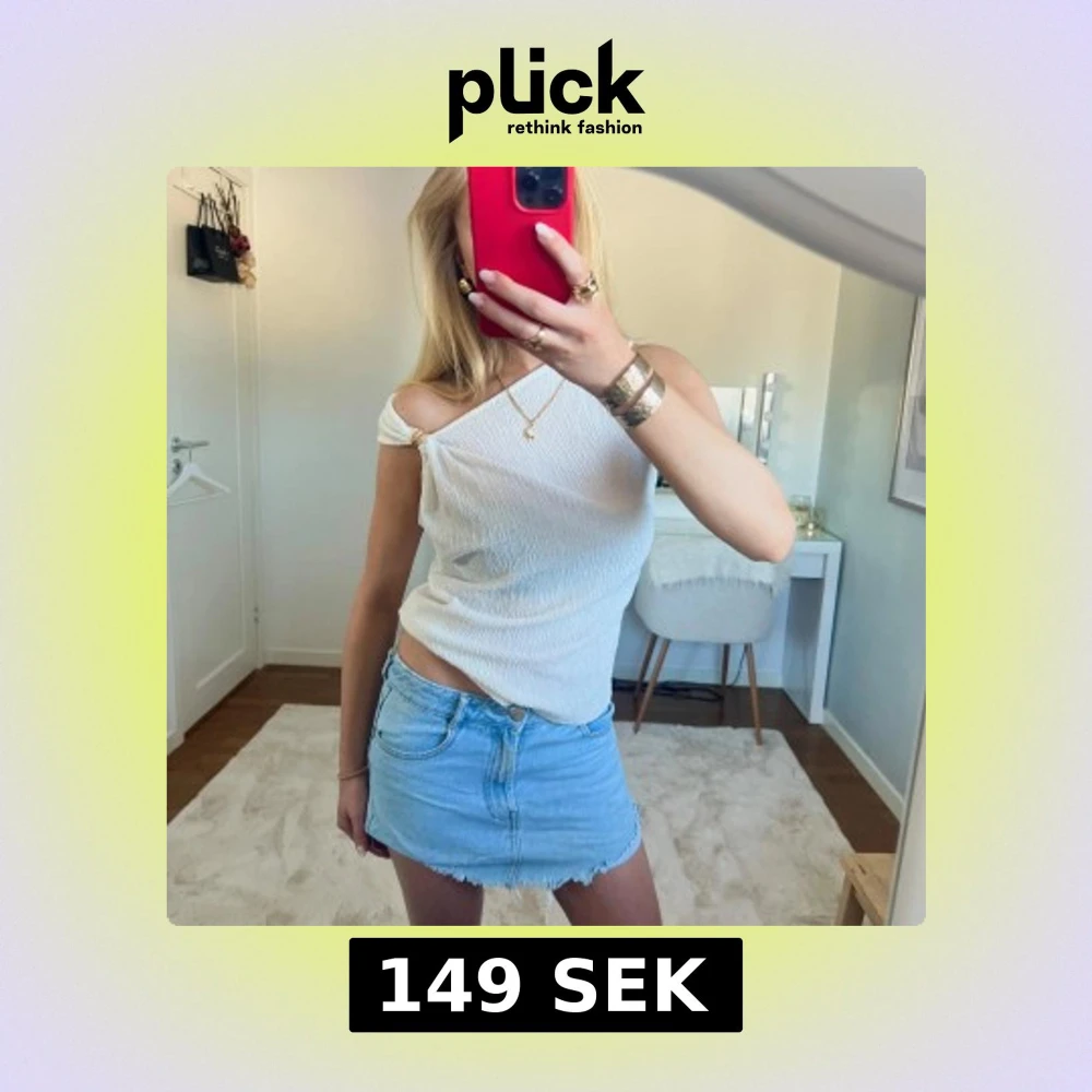 Superfin vit topp med cool guld-detalj på ärmen. Går att ha one-shoulder eller vanligt. Passar perfekt till fest!💕 storlek xs/S