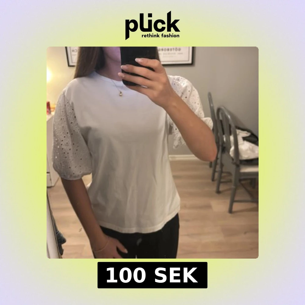 Säljer en söt vit topp från Kappahl i storlek XS passar även bra i S. Toppen har korta puffärmar med broderade detaljer