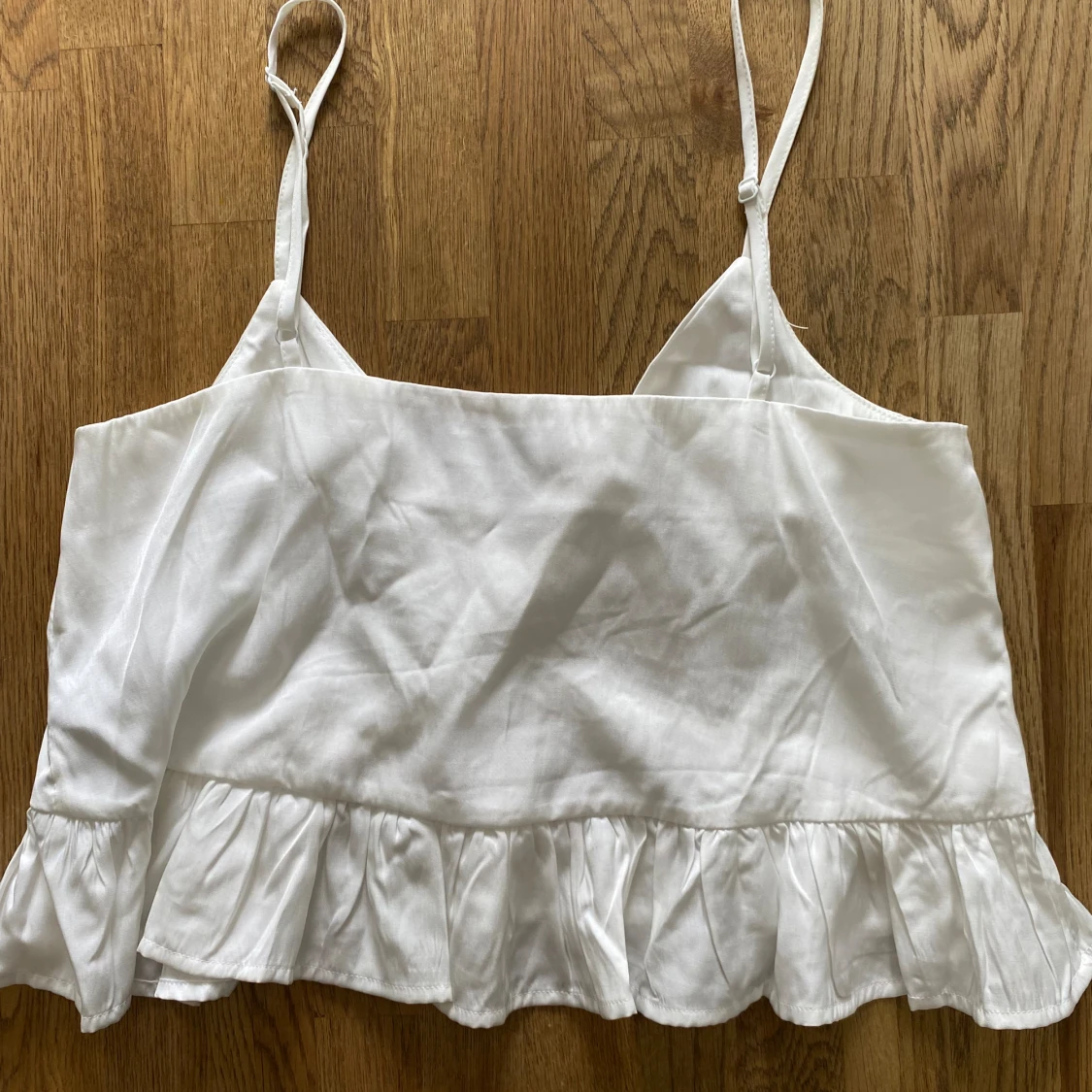 Söt vit topp från Anika Tellers kollektion med NA-KD, limitted edition, går inte att köpa längre. Storlek 36. Använd fåtal gånger! Silkeslikande material Hör av er vid frågor❤️