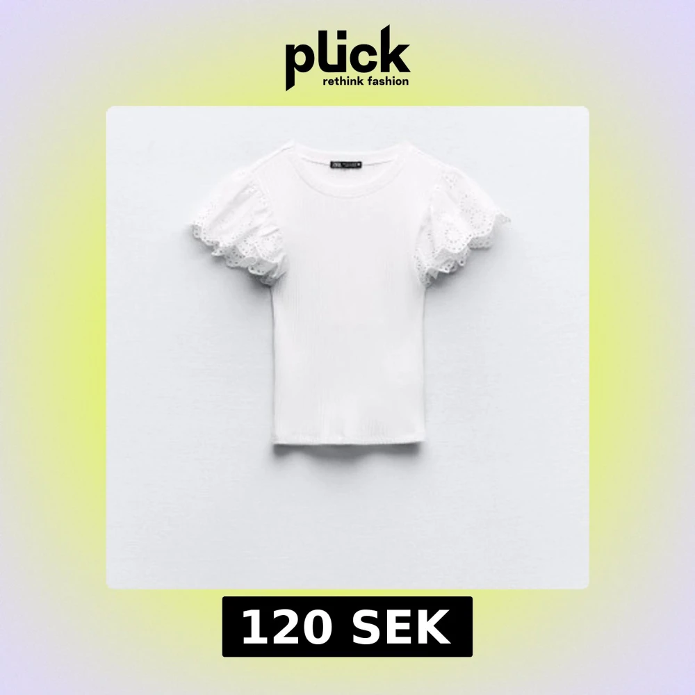 Säljer en söt vit ribbad topp från Zara med korta ärmar och spetsdetaljer. Knappt används så i bra skick❣️