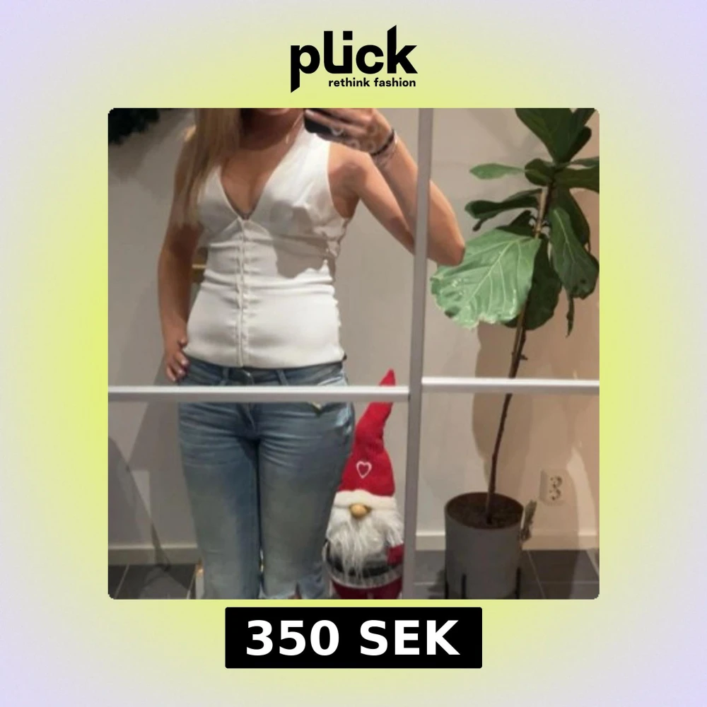 Säljer en vit topp från Zara med djup v-ringning och knappar framtill. Toppen har en figurnära passform och är tillverkad i ett slätt material som ger en stilren look. Endast använd en gång