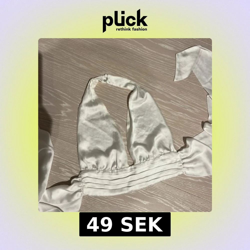 Vit halterneck topp från Zara i ett sidenliknande material. Toppen har en knytning i ryggen och en djup urringning framtill. Perfekt för fest eller i sommar!! Har lite missfärgning och lite trådar som gått upp men inget man tänker på!⭐️ Storlek M men passar S