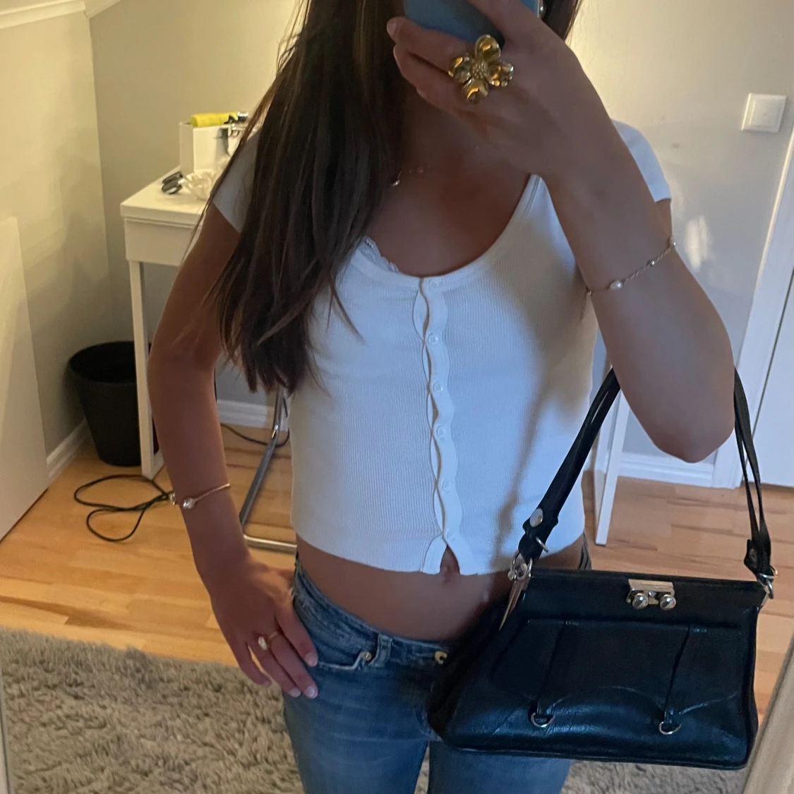 Säljer en vit ribbad topp med knappar där fram i storlek xs. Perfekt till jeans eller kjol för en fräsch look och mer basic look men går även att piffa till med mycke smycken, skriv om ni undrar nått❤️