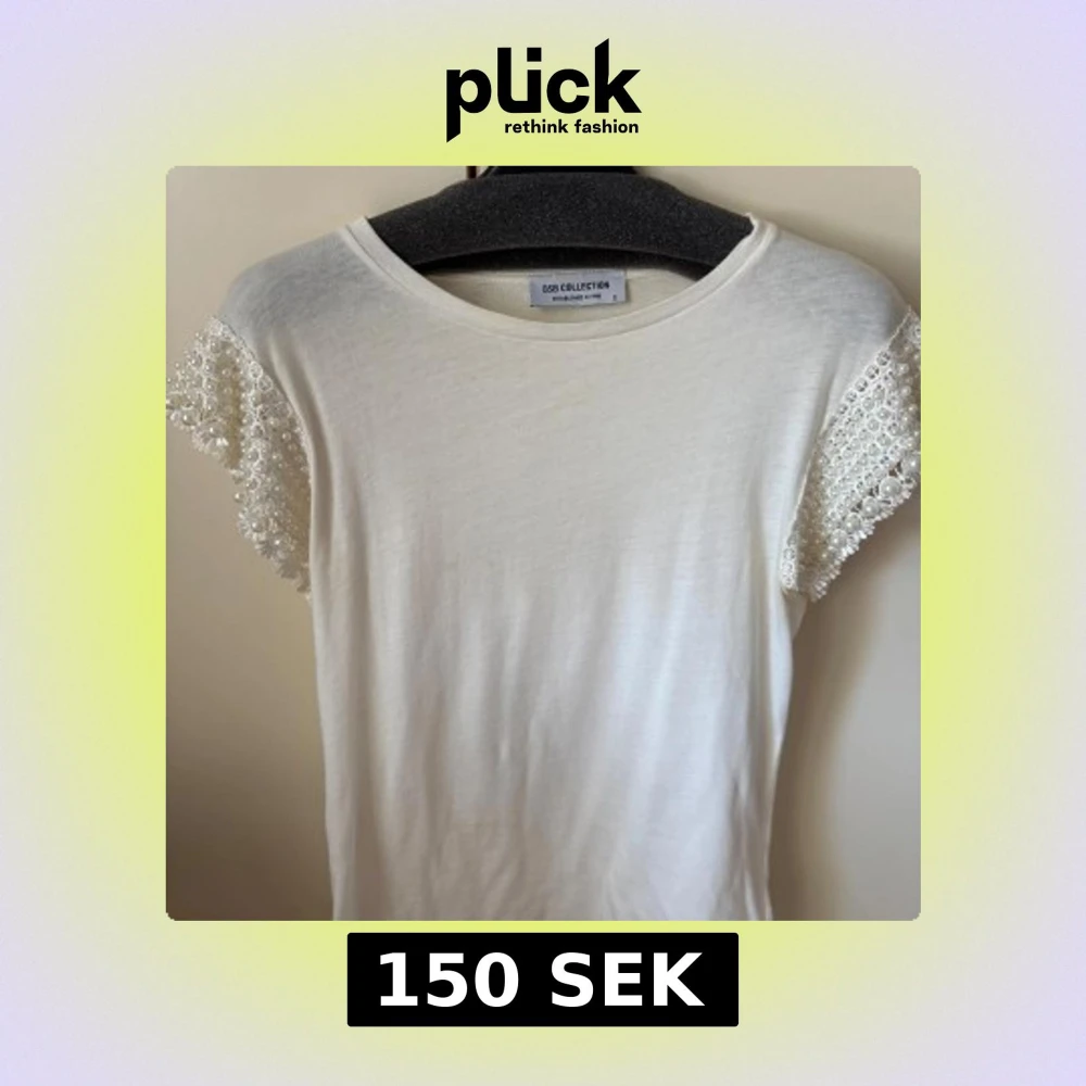 Supersöt vit topp från BSB Collection med korta ärmar dekorerade med pärlor och spetsdetaljer. Rund halsringning och mjukt material som känns skönt mot huden. Perfekt för dig som vill ha något extra till din outfit!