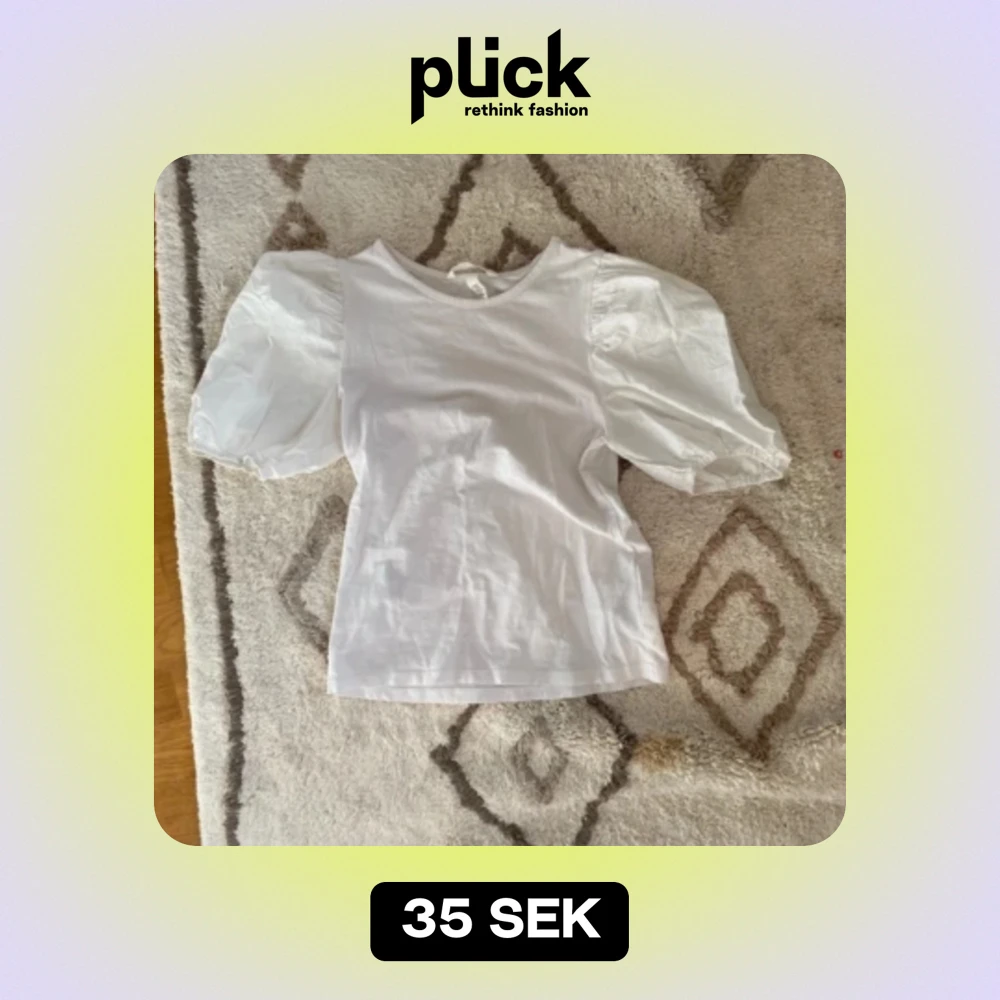 En vit topp med puffärmar. Toppen har en rund halsringning och är tillverkad i ett lätt och bekvämt material. inte använd särskilt många gånger💗