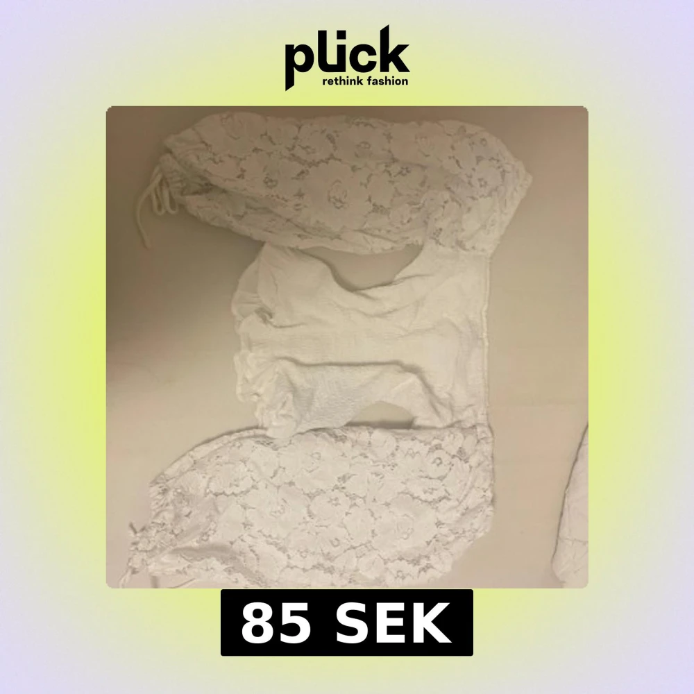 Snygg vit topp med knytband. Perfekt för en varm sommardag. Inköpspriset var 180kr. Den har inga defekter förutom en sida av armen där snöret är lite fläckig. Kontakta mig först ifall intresserad. Köparen står för frakten. 💗