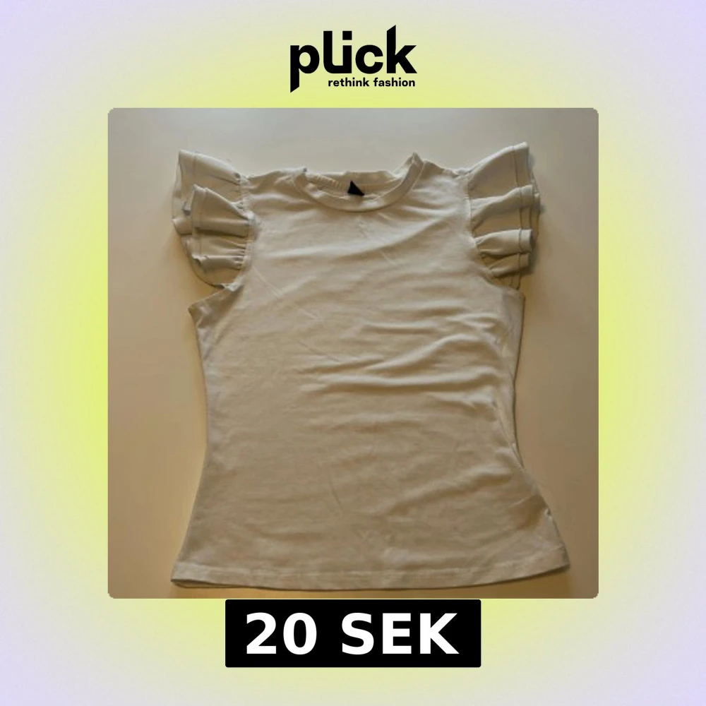 Säljer en vit topp från SHEIN med korta volangärmar som ger en söt och trendig look. Toppen har rund halsringning och är tillverkad i ett mjukt material. Perfekt att styla till jeans eller kjol!