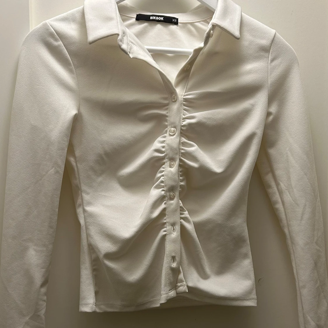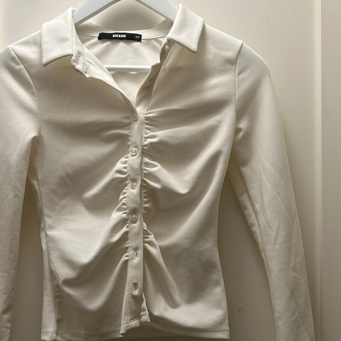 Vit långärmade topp i storlek XS. Använd 1 gång men i superbra skick. Sitter tajt och den är stretchig.