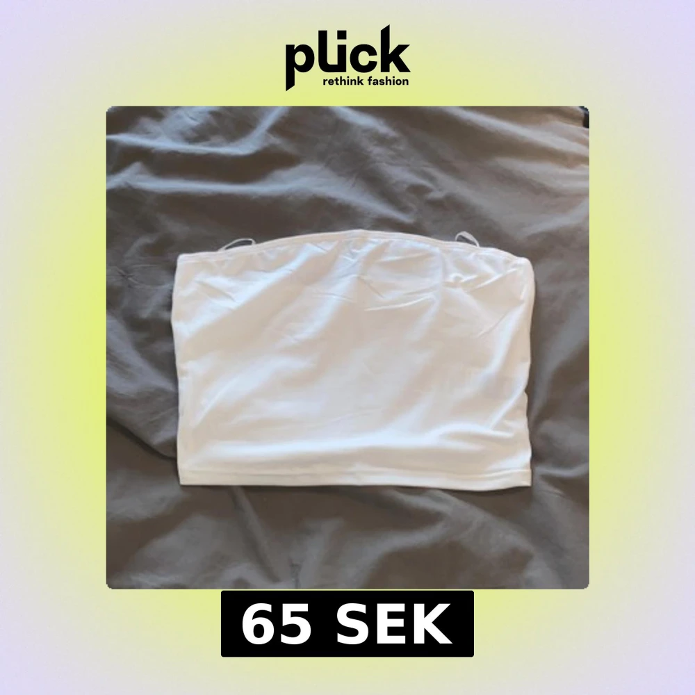 Säljer en enkel och stilren vit tubtopp i mjukt material. Perfekt att matcha med jeans eller kjol för en clean look. Toppen är axelbandslös och har en tight passform.