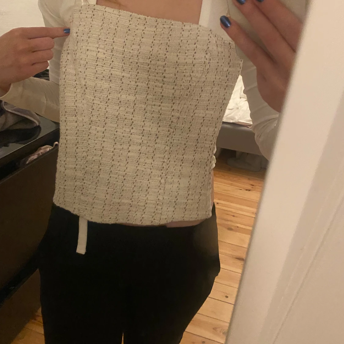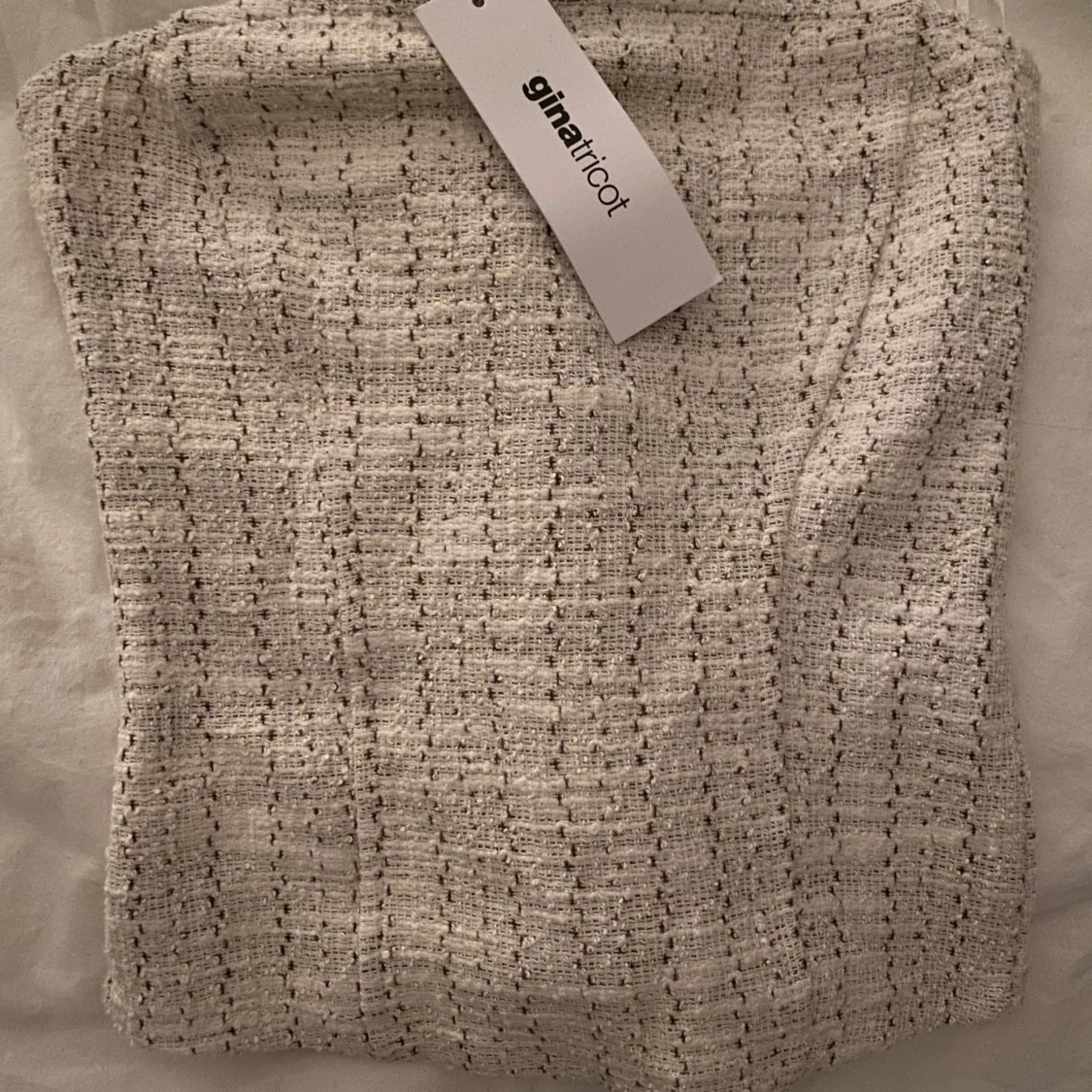 Säljer en stilren vit tubtopp från Gina Tricot. Toppen har ett diskret rutmönster och är perfekt för att skapa en chic look. För liten för mig