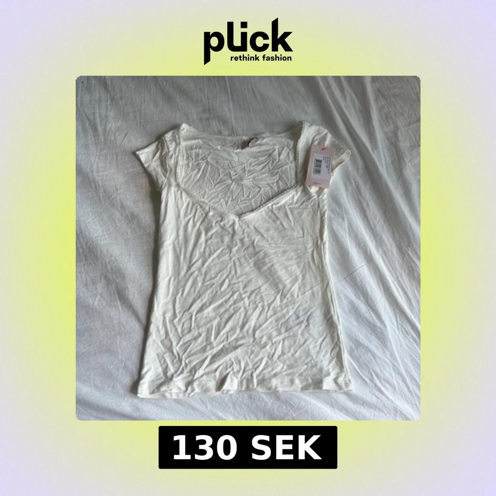 Säljer en söt vit topp från Nelly i storlek XS. Toppen har v-ringning med spetskant, är kortärmad och är helt ny!