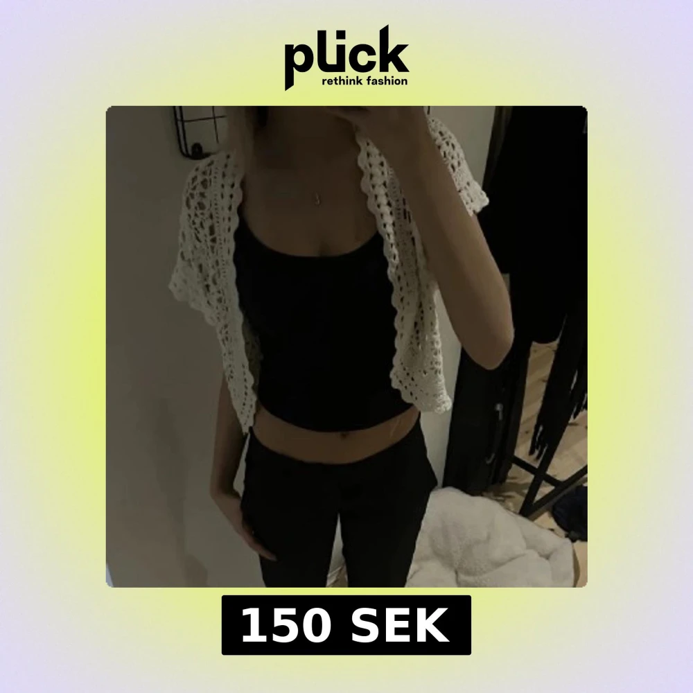 Säljer en söt vit virkad bolerotopp med korta ärmar. Perfekt att bära över en enkel topp. Den är lätt och luftig, vilket gör den idealisk för varmare dagar.