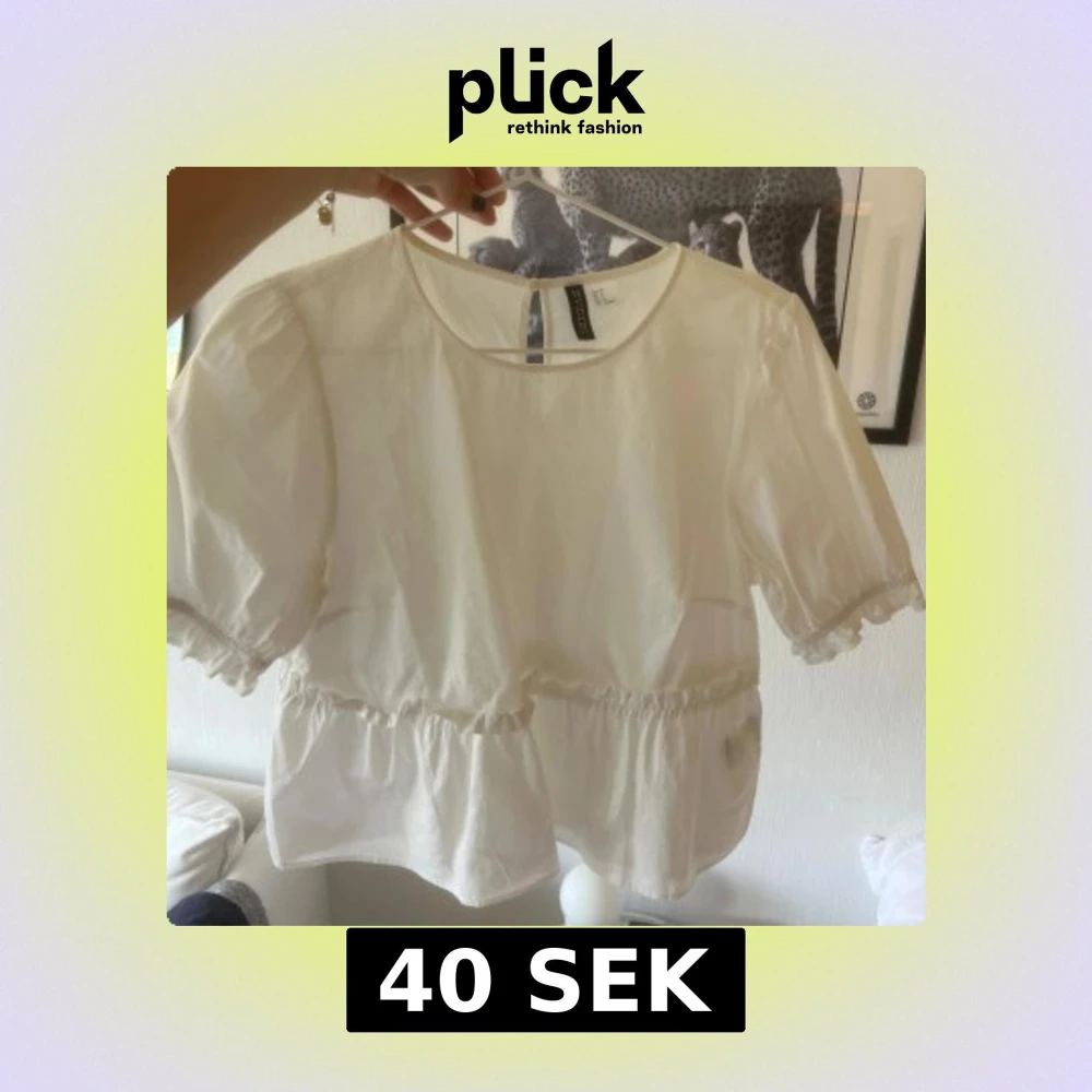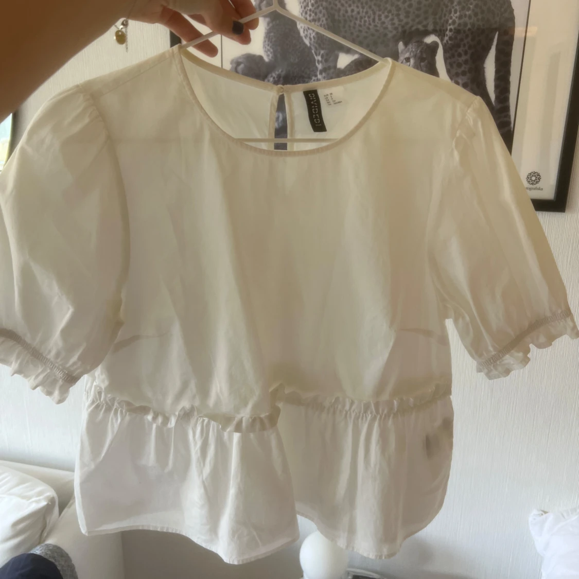 Vit blus från HM med volangdetaljer och korta puffärmar i storlek 38!