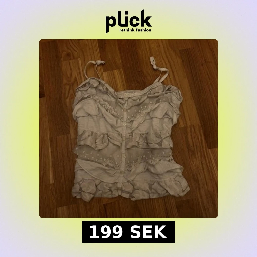 Supersöt vit linnetopp från Abercrombie & Fitch med volanger, spetsdetaljer och knappar framtill. Justerbara axelband och transparenta partier med broderade prickar ger en romantisk vibe. Perfekt för sommardagar när du vill känna dig extra fin.