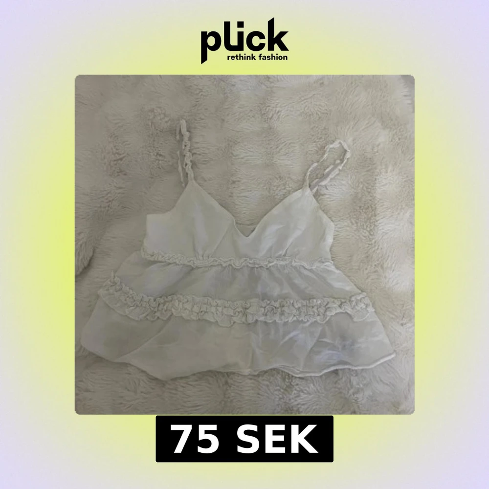 Supersöt vit linnetopp med smala, rynkade axelband och volangdetaljer över byst och midja. Toppen är lätt transparent och har en luftig, flowy passform med v-ringning. Perfekt för varma dagar och ger en romantisk vibe.