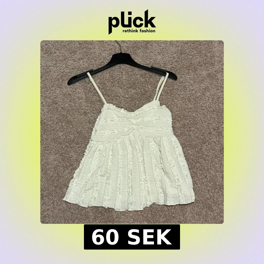 Supersöt vit linnetopp med smala justerbara axelband och volangiga detaljer. Perfekt för varma dagar. Strl Xs