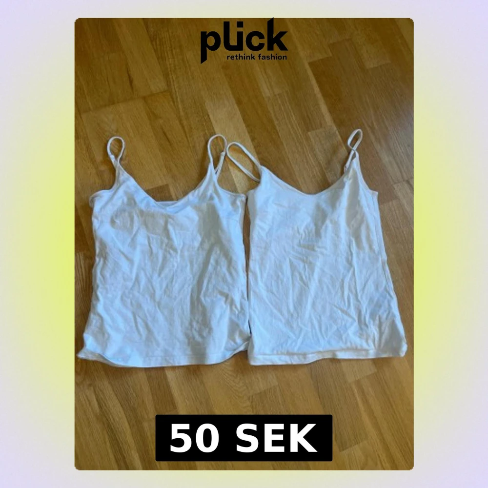 Två vita linnetoppar från 157 med smala axelband och v-ringad hals. Materialet är mjuk bomull med lite stretch (95% bomull, 5% elastan) som sitter skönt mot kroppen. Perfekt att styla med jeans eller shorts för en clean look.